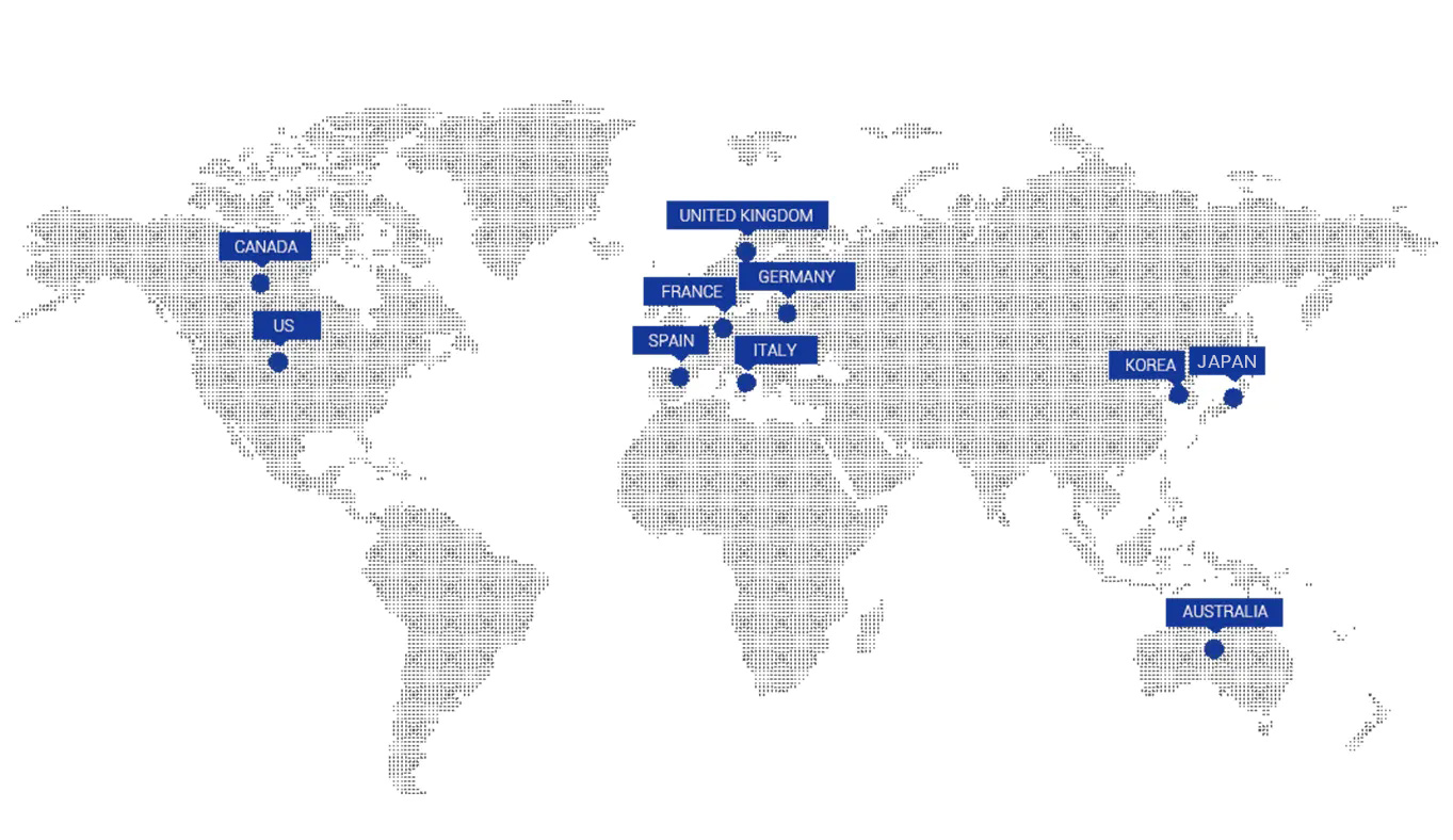 Tyskland, Japan, Spanien, Italien, Storbritannien, Sydkorea, Australien och Kanada.